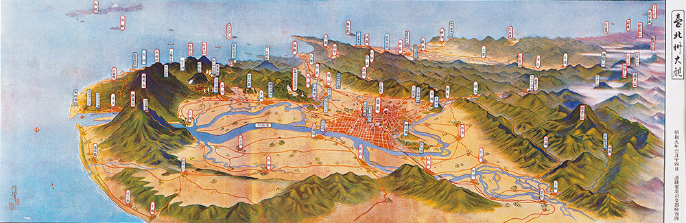 一九三O年代,台灣有豐富的鳥瞰式地圖流傳,對於這個年代的歷史背景和社會意義,我們應該去了解。一八九五年,日本領台,台民義不帝倭的武裝抗日,曾令統治者疲於奔命﹔等日人的統治權較穩固後,一九二O年代又掀起了澎湃洶湧的近代台灣民族運動,先覺者以行動、以紙筆、以口舌向日本殖民政府抗爭,然而形勢比人強,非武裝抗日於進入一九三O年代後逐漸偃旗息鼓,雖有人另組「台灣地方自治聯盟」繼續爭取自治權,不過在「有氣無力」中收場。