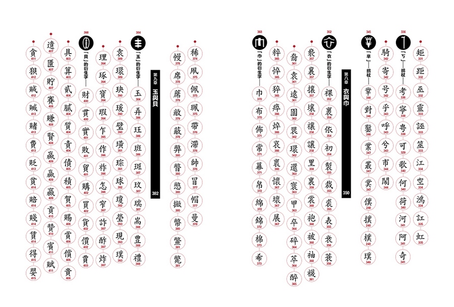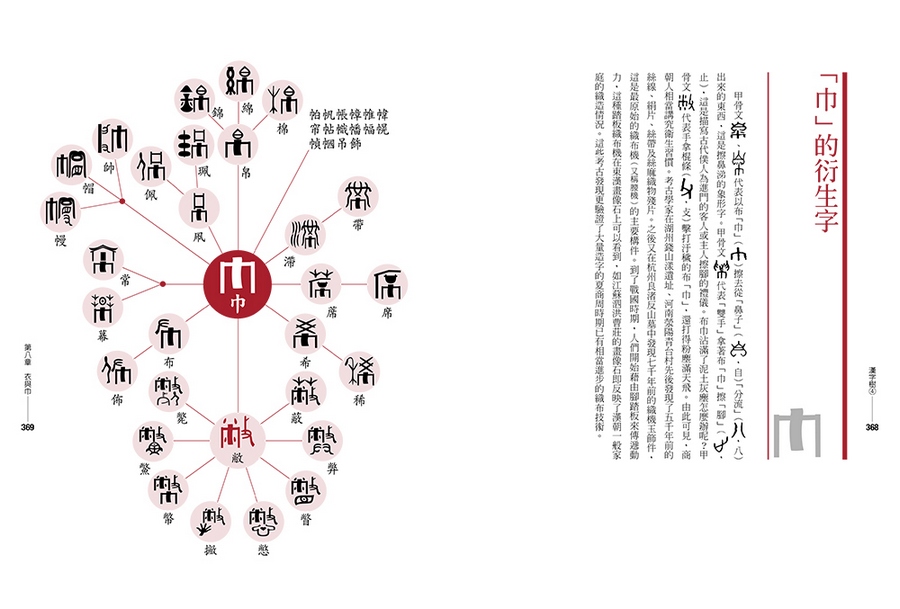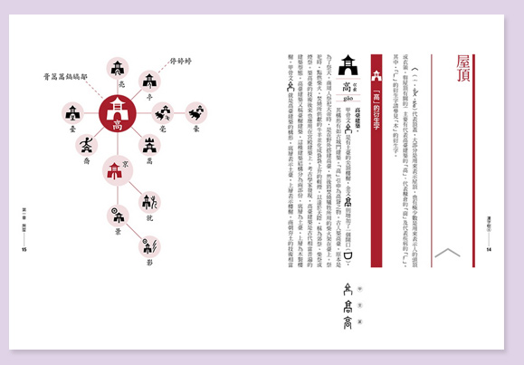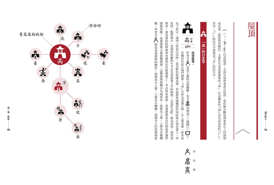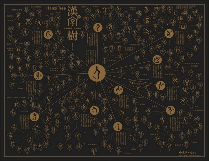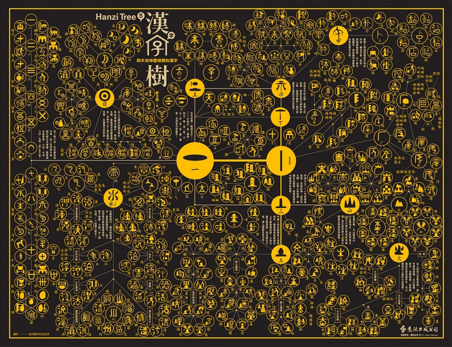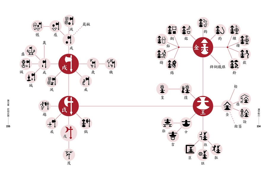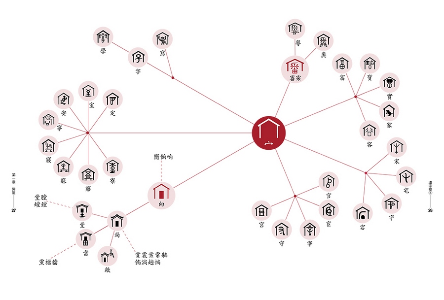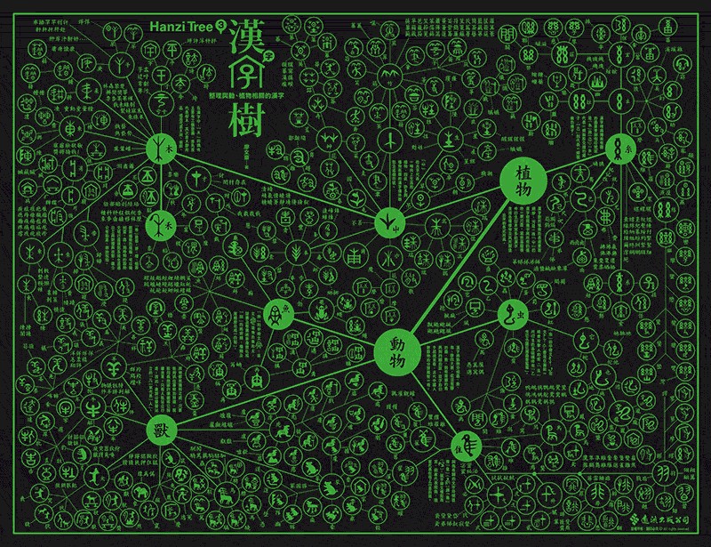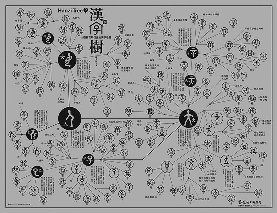 英文字母只有二十六個,拼寫容易,但是漢字部首將近兩百個(康熙字典有一七六個部首),行政院全字庫系統所公告的漢字基礎構件更超過五百個,要熟悉這麼多的漢字基礎構件談何容易?更何況這些構件之間似乎並無可依循的規律,無怪乎能學好漢字的外國人實在少之又少。但是,我找出古字中具有獨立構形及意義的漢字符號,以圖像方式建構出具有衍生關係的漢字樹。