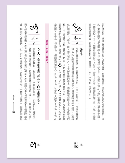 其實一開始,我並沒有想要寫書。我從小學漢字,卻不知道一筆一畫代表什麼意義。這種疑惑隱藏在心裡,日積月累,最後我實在受不了,於是我開始探究漢字背後的世界。我彷彿是一個好奇的小孩,推開了一扇門,然後掉進一座漢字的迷宮花園。我被這座花園裡的甲骨文與金文迷住,對於古人的造字智慧,充滿驚奇與讚嘆。走著走著,發現自己其實已經迷路了。我不斷摸索著出路,先按著前人的蹤跡,以為能找到出路,但卻沒想到引發更多的迷惑。